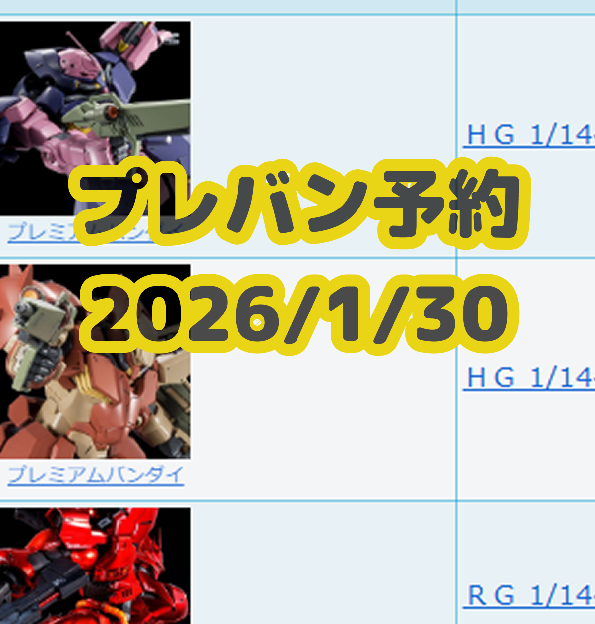 25年11月19日更新:一部のガンプラ等の再販キットを更新
