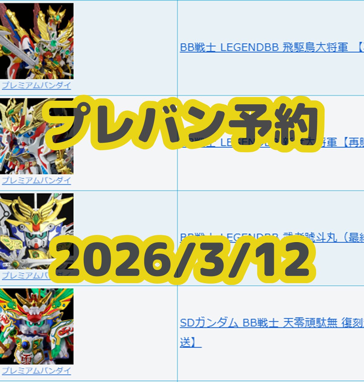 2026年1月・2月・3月に再生産が予定されている再販ガンプラ等のうち、国内一般店舗に出荷予定がない、もしくは4月以降に一般再販が延期される可能性のあるガンプラをリストとしてまとめました!
