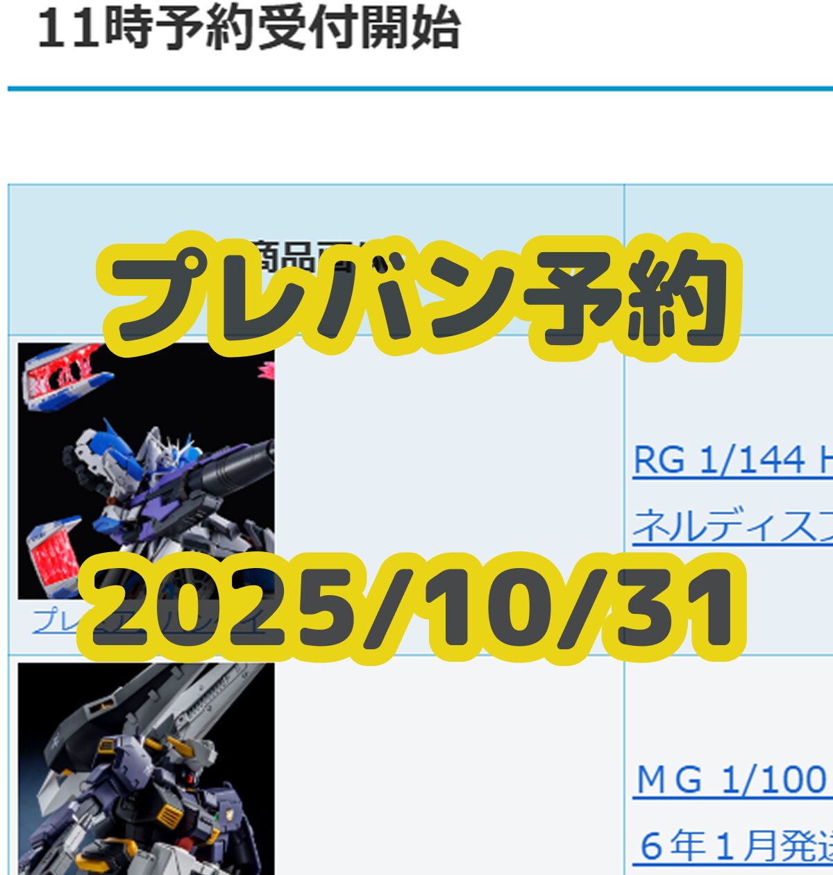 2025年10月31日 金曜日のガンダムベース ガンプラ再販 入荷・完売情報です。