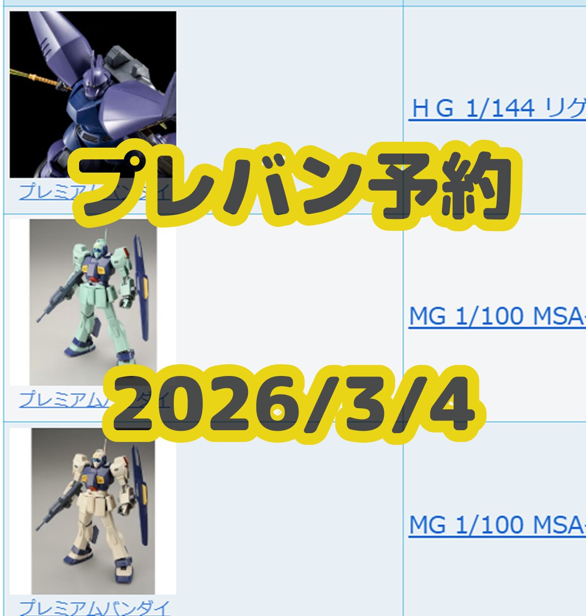 ガンプラ再販カレンダー